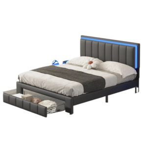 Queen Size LED Platform Bed Drawer Motion Sensor Lights